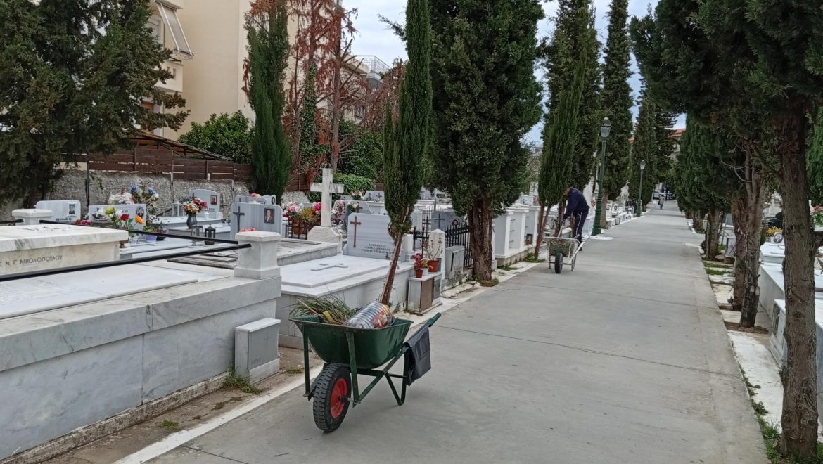 Εργασίες ευπρεπισμού εν όψει Πάσχα στο νεκροταφείο Καλαμάτας που ξέμεινε από εργάτες