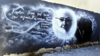 Ακόμα μια γωνιά της Καλαμάτας "στολισμένη" αισθητικά από τον Skitsofreni με απόσπασμα από ποίημα του Οδυσσέα Ελύτη. Εμείς...