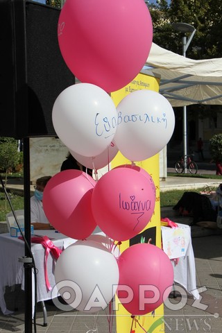 Η εκδήλωση έκλεισε με μια συγκινητική κίνηση, αφού στις καρέκλες που καθόταν ο κόσμος είχαν τοποθετηθεί ροζ μπαλόνια, μπαλόνια που πολέμησαν με τον καρκίνο αλλά τελικά νικήθηκαν, έτσι στο τέλος αφέθηκαν στον ουρανό της Καλαμάτας στέλνοντας ένα ισχυρό μήνυμα.