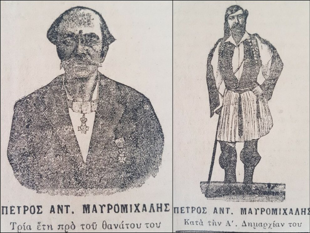 «Ότε κατά το απαίσιον έτος 1862 τον Δήμον μας ελυμαίνετο η αναρχία, προς Σε, Πέτρε Αντωνίου Μαυρομιχάλη, γόνε ενδόξου γενιάς, προς Σε επέβλεψε σύμπας ο Δήμος μας, παρά Σου εξήρτησε την σωτηρίαν του. Τας ελπίδας δε διέψευσας. Ήδη έρχομαι εγώ Δήμαρχος κατά την διάδοχον γενιάν ν’ αποτίσω φόρον ευγνωμοσύνης καταθέτων προσωπικόν στέφανον αποχαιρετισμού και να παρακαλέσω την Σεβασμίαν Σου ψυχήν συν ταις ψυχαίς των λοιπών του ενδόξου γένους Σου, να μη παύητε ικετεύοντες τον Ύψιστον παρ’ ω ήδη ίστασαι, όχι μόνον υπέρ της προόδου του Δήμου μας, αλλά και υπέρ της Σωτηρίας σύμπαντος του κινδυνεύοντος έθνους».
