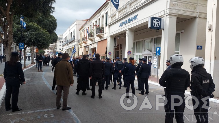Η ομάδα, λοιπόν, αποχώρησε και συγκεντρώθηκε στην αρχή του πεζόδρομου της Αριστομένους, ενώ έπειτα από λίγη ώρα έφθασε στην οδό 23ης Μαρτίου και επιχείρησε να πλησιάσει το ηρώο όπου γίνεται η κατάθεση στεφάνων, με την Αστυνομία αυτή τη φορά να τους εμποδίζει.