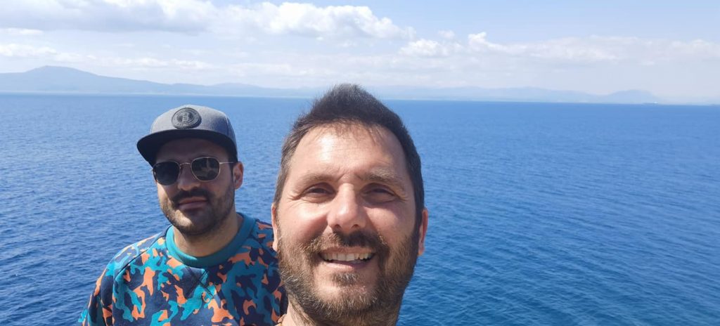 Τα μέλη της ομάδας, Νίκος Κοζομπόλης, Βασίλης Σπύρης και η Σωτηρία Μπαζάνη, με τον Έκτορα. Η τετράδα το Σάββατο έφτασε στο φάρο και έβαλε σήμανση