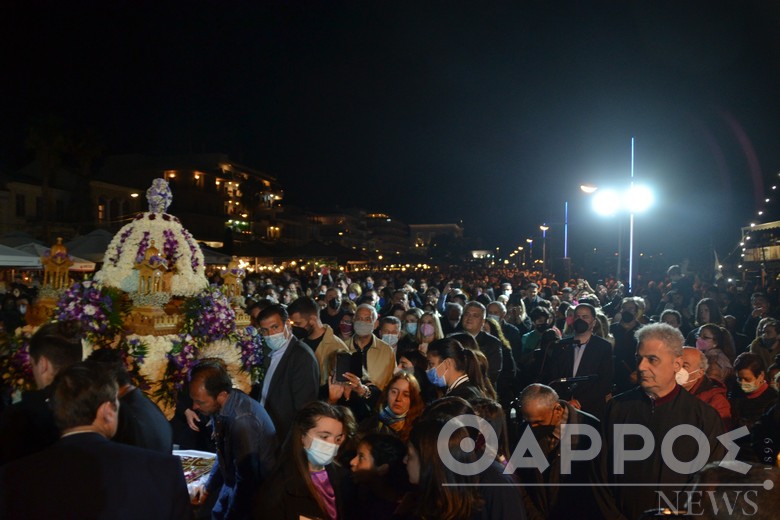 Λίγο πριν τις 10 το βράδυ της Μεγάλης Παρασκευής συναντήθηκαν στο λιμάνι της Καλαμάτας οι Επιτάφιοι των Ναών της Αναλήψεως, της Αναστάσεως και της Αγίας Βαρβάρας.