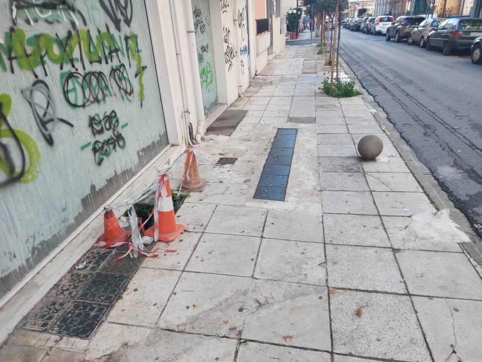 Το βάθος ξεπερνά το ένα μέτρο και είναι άκρως επικίνδυνο για τους πεζούς, ενώ κάθε φορά που γράφουμε απλά κάποιοι τοποθετούν κώνους με κορδέλες, που με τον καιρό «φεύγουν».
