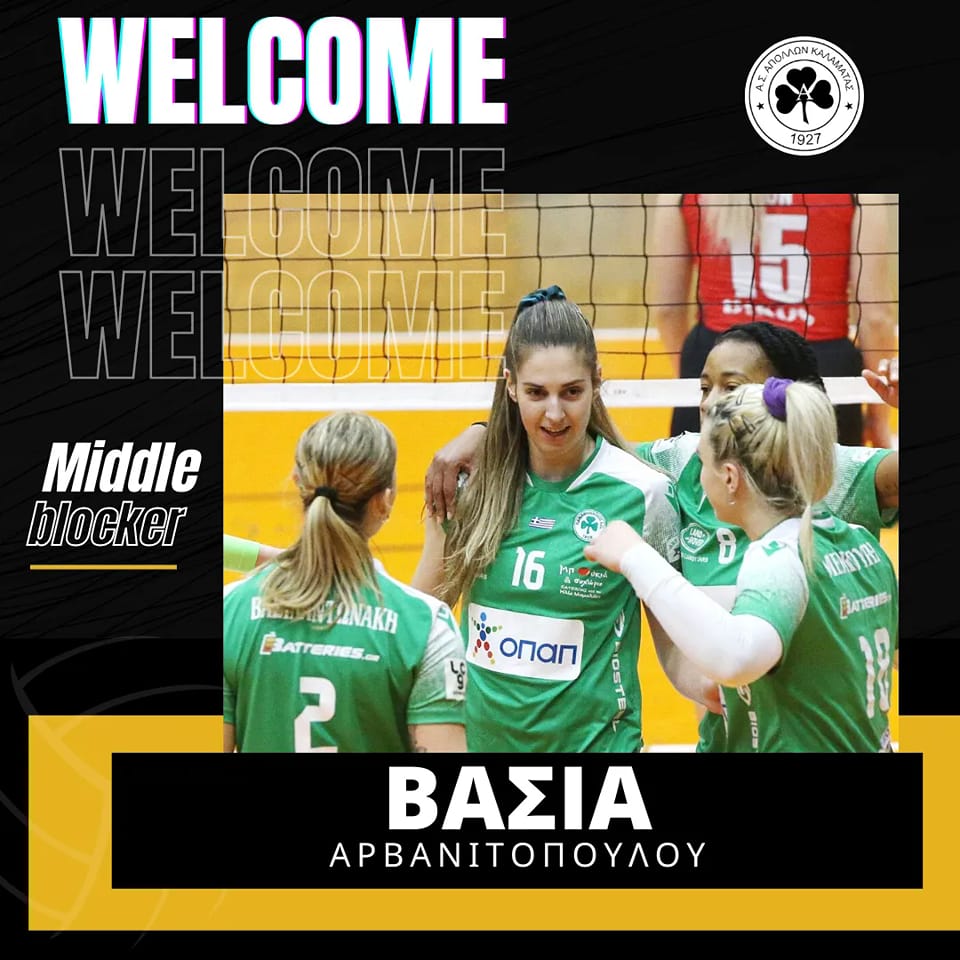 Μετά τη Ζωή Φάκη ο Απόλλωνας συνέχισε με εντυπωσιακό τρόπο τις μετεγγραφικές του κινήσεις ενίσχυσης για το επόμενο πρωτάθλημα της Pre League βόλεϊ γυναικών, ανακοινώνοντας την απόκτηση της Βάσιας Αρβανιτοπούλου, με θητεία στην Α1 και σε μεγάλες ομάδες: «Το κέντρο μας ψηλώνει με τη Βάσια Αρβανιτοπούλου! Γεννημένη το 1999 και με ύψος 1.88 η Βάσια ξεκίνησε το βόλεϋ στην γενέθλια πόλη της στην Πάτρα και συγκεκριμένα στον Απόλλωνα Πατρών.