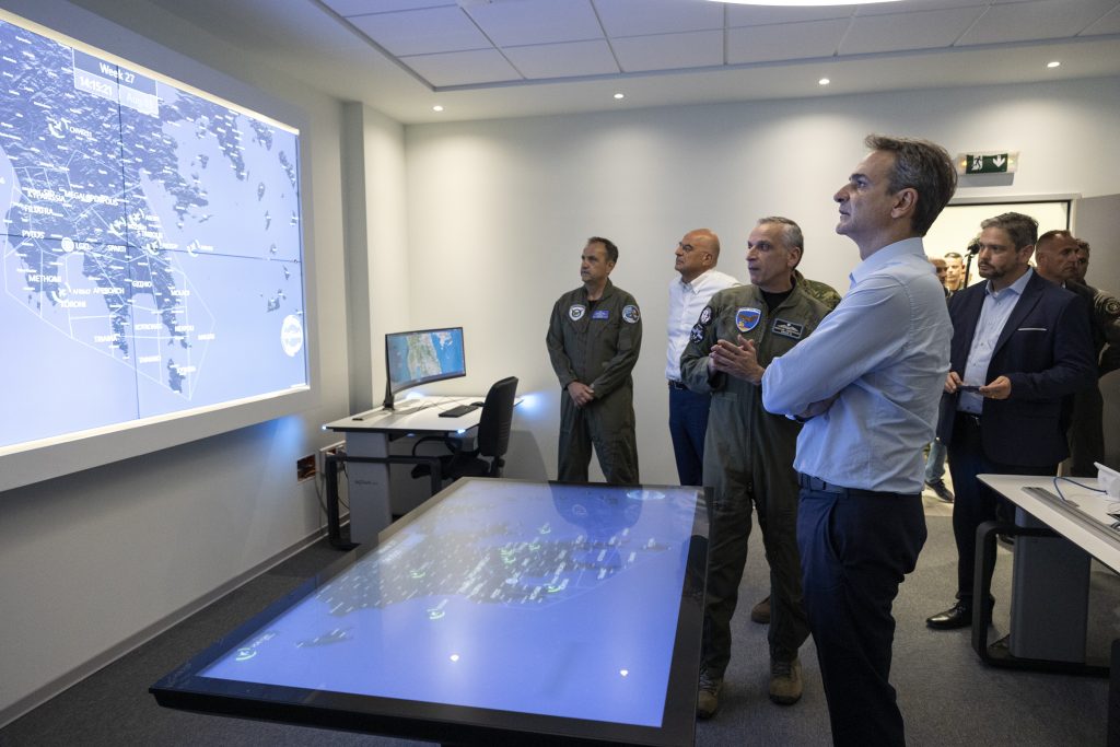 Στη συνέχεια ο Κυριάκος Μητσοτάκης ξεναγήθηκε στις εγκαταστάσεις της μονάδας, όπου είχε την ευκαιρία να ενημερωθεί για τις δυνατότητες των εξομοιωτών υψηλής ευκρίνειας και μεγάλου όγκου δεδομένων, αλλά και για τα συστήματα αναλυτικής παρακολούθησης πτήσεων.