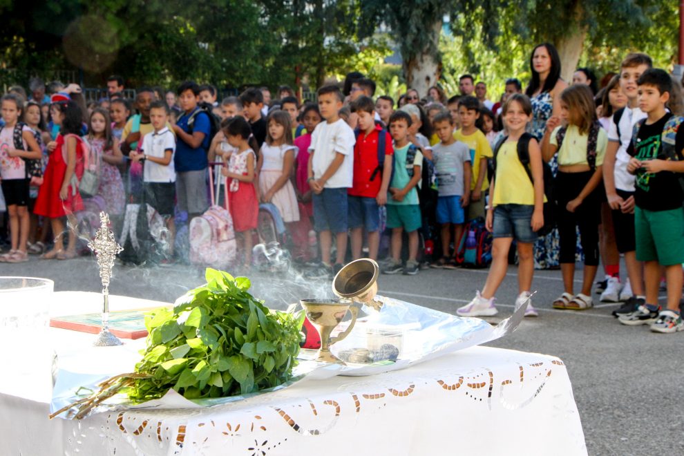 Όπως κάθε χρόνο, έτσι και φέτος, ο καθιερωμένος αγιασμός πραγματοποιήθηκε νωρίς το πρωί σε όλα τα σχολεία πριν περάσουν στις νέες τους τάξεις οι μαθητές για να παραλάβουν τα βιβλία της νέας χρονιάς.