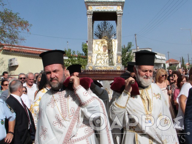 Η Ιερά Εικόνα με λιτανευτική πομπή περιήλθε τους κεντρικούς δρόμους της πόλης, οι οποίοι ήταν στρωμένοι με μυρτιές και άνθη καταλήγοντας στο Μετοχιακό Ιερό Ναό Ζωοδόχου Πηγής, όπου και εναποτέθηκε για οχταήμερο προσκύνημα.