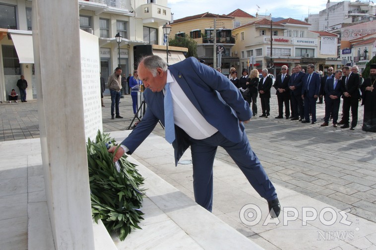 Με το πέρας της δοξολογίας ακολούθησε επιμνημόσυνη δέηση και κατάθεση στεφάνων στο μνημείο της πλατείας 23ης Μαρτίου υπό τον πρωτοπρεσβύτερο Σωτήριο Τζαϊλέα. Τηρήθηκε ενός λεπτού σιγή στη μνήμη των νεκρών του Έθνους, ενώ οι εκδηλώσεις έκλεισαν με την ανάκρουση του Εθνικού Ύμνου.