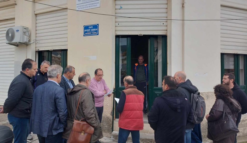 Έξω από τη Διεύθυνση Δευτεροβάθμιας Εκπαίδευσης Μεσσηνίας συγκεντρώθηκαν χθες το μεσημέρι εκπαιδευτικοί ύστερα από κάλεσμα της Α’ ΕΛΜΕ, προκειμένου να πραγματοποιήσουν παράσταση διαμαρτυρίας με αίτημα να υπογραφούν οι διαπιστωτικές πράξεις μονιμοποίησης όλων των δόκιμων νεοδιόριστών εκπαιδευτικών που έχουν συμπληρώσει τα δύο χρόνια της δόκιμης υπηρεσίας τους.