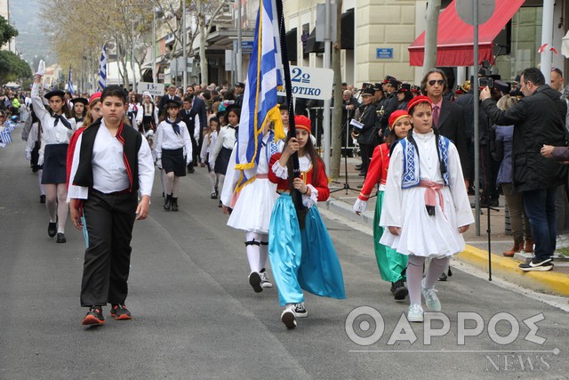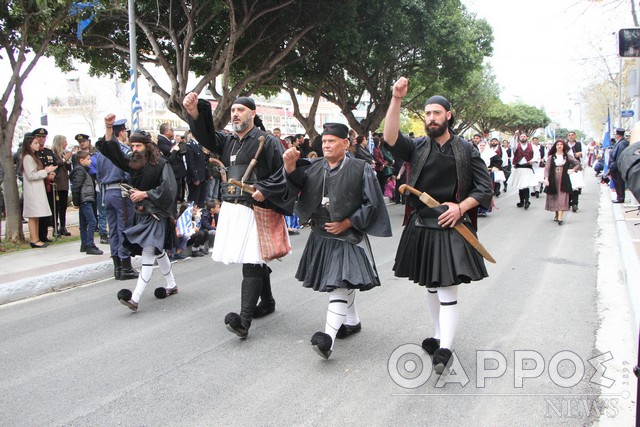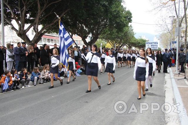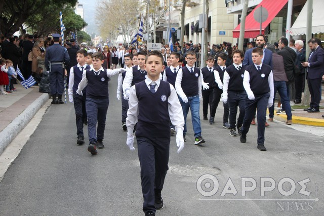 Πλήθος κόσμου, παρά το συννεφιασμένο καιρό, συνέρρευσε προκειμένου να παρακολουθήσει μαθητές, χορευτικούς και τμήματα των Ενόπλων Δυνάμεων και των Σωμάτων Ασφαλείας να παρελαύνουν υπό τους ήχους της Δημοτικής Φιλαρμονικής Καλαμάτας.