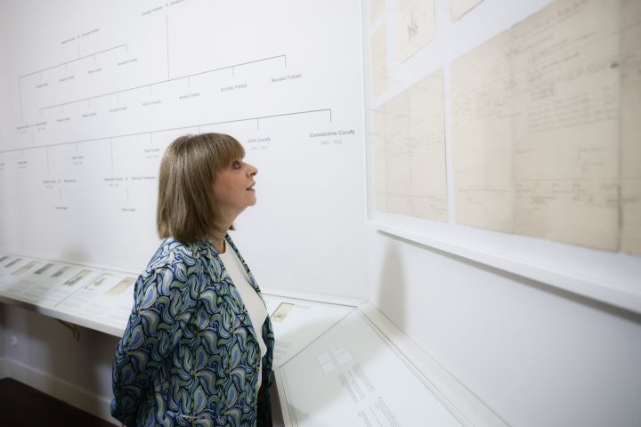Στη συνέχεια, η Κατερίνα Σακελλαροπούλου, η Λίνα Μενδώνη και ο πρόεδρος του Ιδρύματος Ωνάση Αντώνης Σ. Παπαδημητρίου ξεναγήθηκαν στην οικία από την υπεύθυνη του Αρχείου Καβάφη, Μαριάννα Χριστοφή.