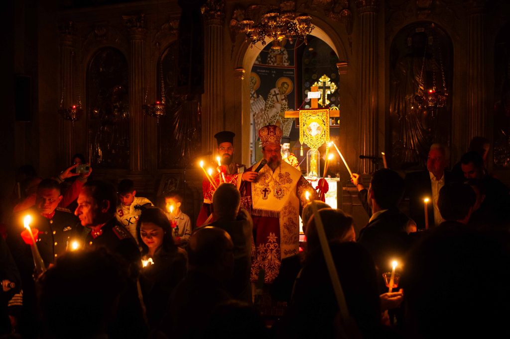 Αφού μετέδωσε το Άγιο Φως, προέστη της τελετής της Αναστάσεως στον αύλειο χώρο του Μητροπολιτικού Ναού, παρουσία εκπροσώπων Αρχών και Φορέων και πλήθους πιστών.