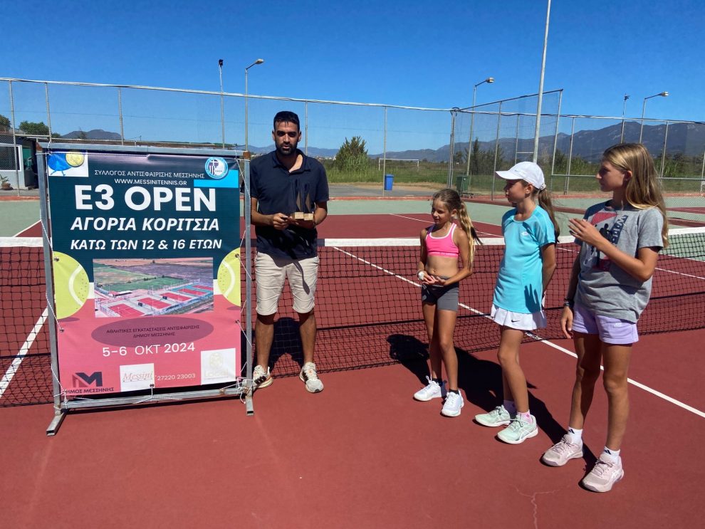 Ολοκληρώθηκαν με μεγάλη επιτυχία τη Δευτέρα 7/10/2024, οι αγώνες του Ε3 ΟPEN τουρνουά 40ής εβδομάδας της ΣΤ´ Ένωσης Αντισφαίρισης Πελοποννήσου, στα 5 γήπεδα των αθλητικών εγκαταστάσεων του Δήμου Μεσσήνης. Ξεχωριστές στιγμές για το μεσσηνιακό τένις, η κατάκτηση της 1ης θέσης στην κατηγορία Α12 από τον Βασίλη Βρυώνη και της 3ης θέσης στην κατηγορία Α16 από τον Δημήτρη Πιερρακέα -αθλητών της αγωνιστικής ομάδας του Κalamata Tennis Garden, οι οποίοι εκπροσωπούν στα επίσημα τουρνουά της Ομοσπονδίας το Σύλλογο Αντισφαίριση Μεσσήνης.