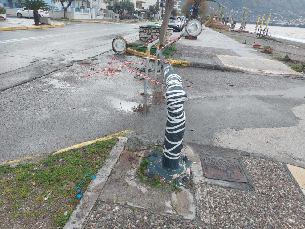 Το πρωί του Σαββάτου μια κολώνα φωτισμού βρέθηκε στο έδαφος, όταν απορριμματοφόρο του Δήμου Καλαμάτας κατά τη διάρκεια αποκομιδής παρέσυρε σωλήνα με καλώδια που κατάστημα είχε περάσει από τη μια πλευρά της Ναυαρίνου στην άλλη και είχε τοποθετήσει πάνω στη συγκεκριμένη.