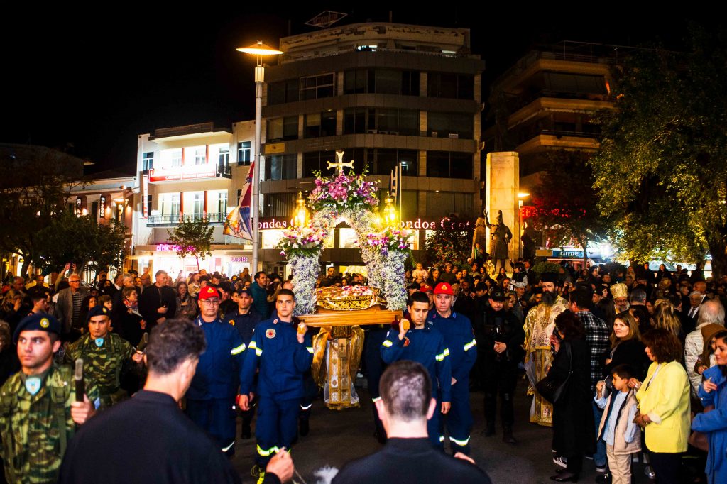 Κατά την διάρκεια της περιφοράς στην κεντρική πλατεία της πόλης ο Επιτάφιος του Μητροπολιτικού Ναού συναντήθηκε με τον Επιτάφιο του ιστορικού Ναού Αγίου Νικολάου Φλαρίου.
