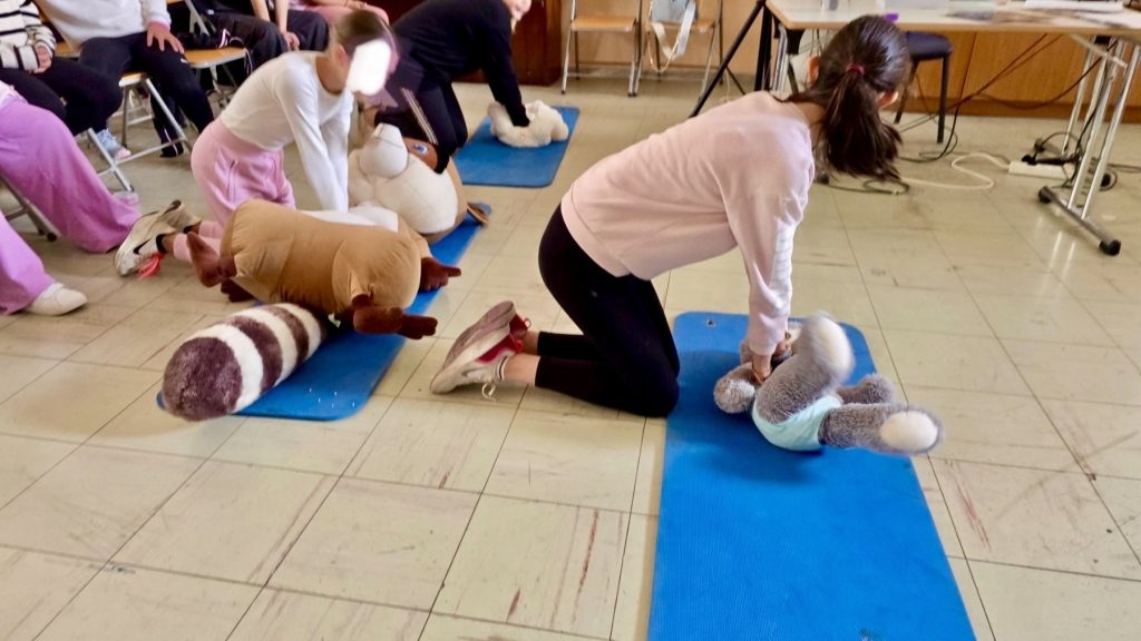 Προετοιμασμένοι με τα ατομικά τους αυτοσχέδια προπλάσματα, τα αγαπημένα τους λούτρινα κουκλάκια, μήκους περίπου 50 εκατοστών, οι μικροί διασώστες γονάτισαν μπροστά από το “μοντέλο” τους και, ακολουθώντας τις οδηγίες των εκπαιδευτών του Kids Save Lives, εφάρμοσαν θωρακικές συμπιέσεις για 2 λεπτά, μαθαίνοντας έτσι πώς μπορούν να σώσουν μια ζωή!