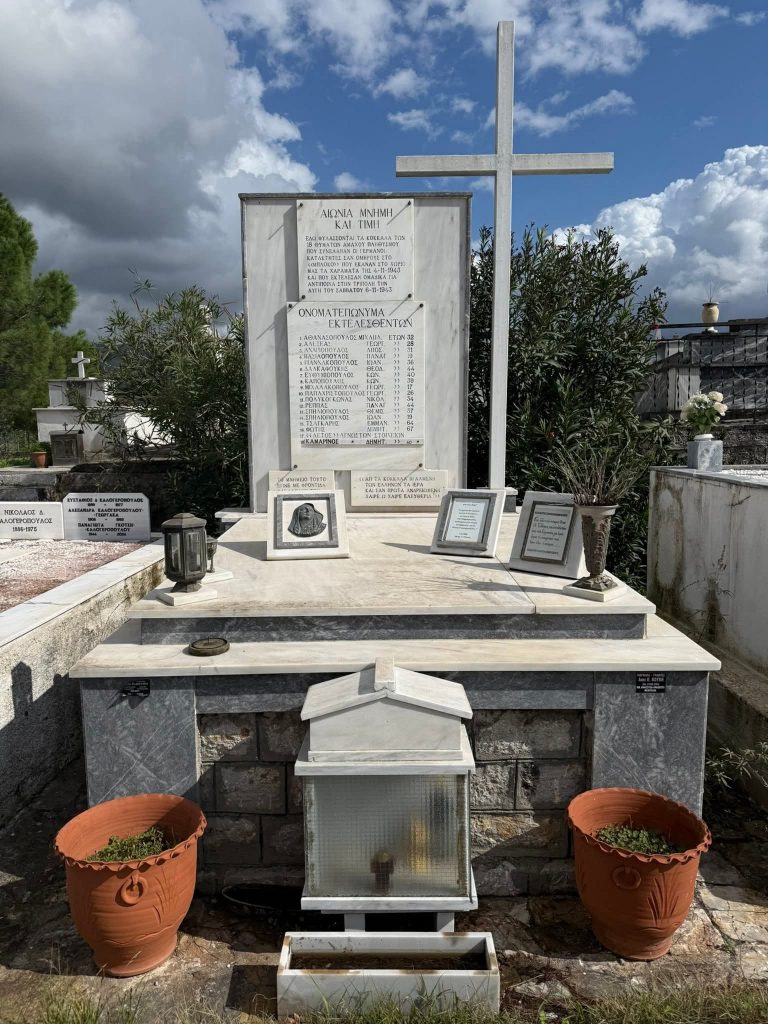 Το τρισάγιο έγινε στο μνημείο των εκτελεσθέντων στο κοιμητήριο Διαβολιτσίου όπου βρίσκονται τα οστά των 18 θυμάτων τα οποία μεταφέρθηκαν εκεί από τις οικογένειες τους μετά την απελευθέρωση της πατρίδας μας τον Μάιο του 1946.