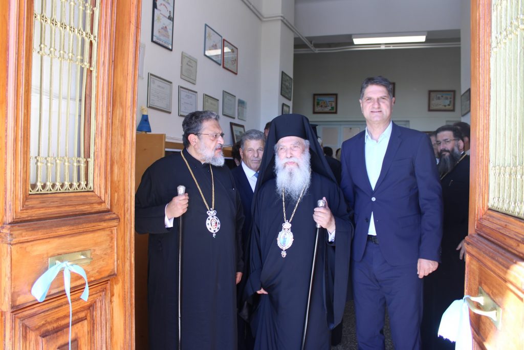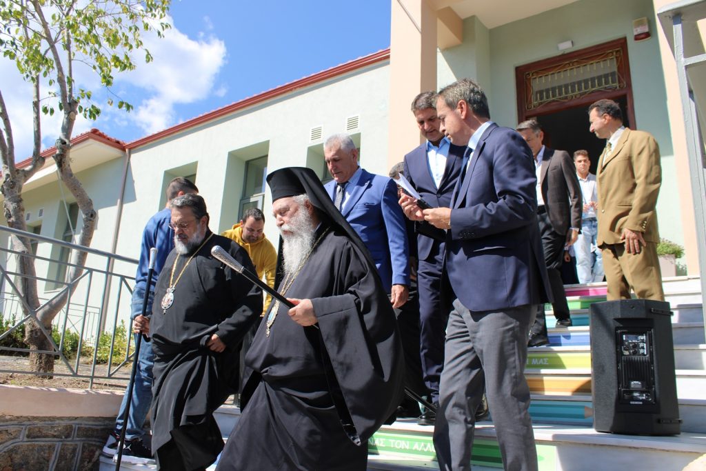 Ακολούθησε το κόψιμο της κορδέλας των εγκαινίων και η περιήγηση στις ανακαινισμένες αίθουσες του σχολείου.