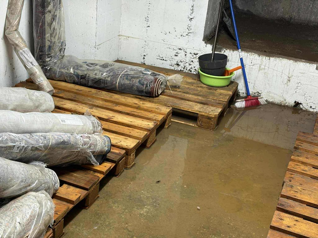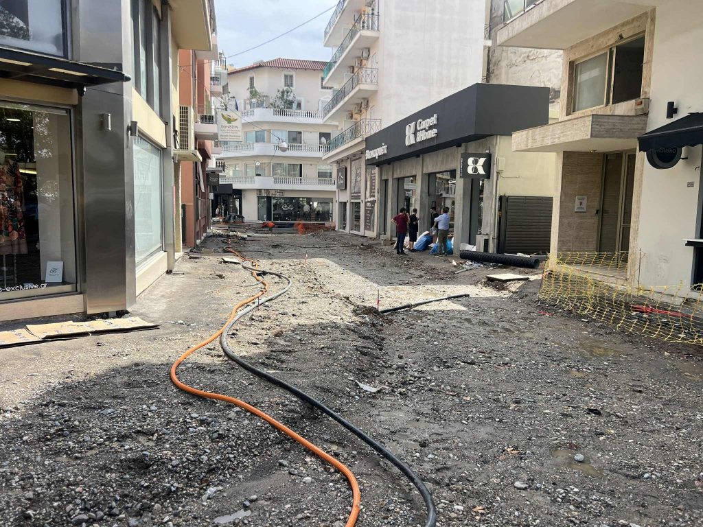 Στην οδό Γιατράκου, σε σημείο που γίνονται έργα ανάπλασης, ένα κατάστημα με χαλιά που λειτουργεί εκεί, υπέστη σοβαρές ζημιές όταν το νερό της βροχής εισχώρησε στο υπόγειο.