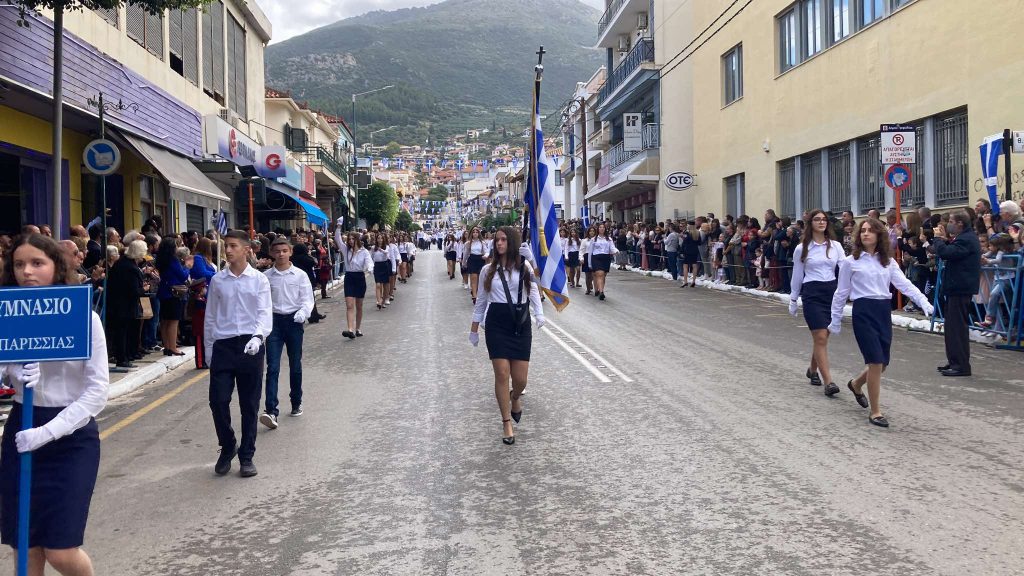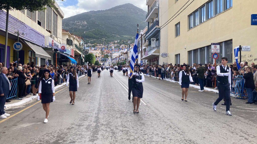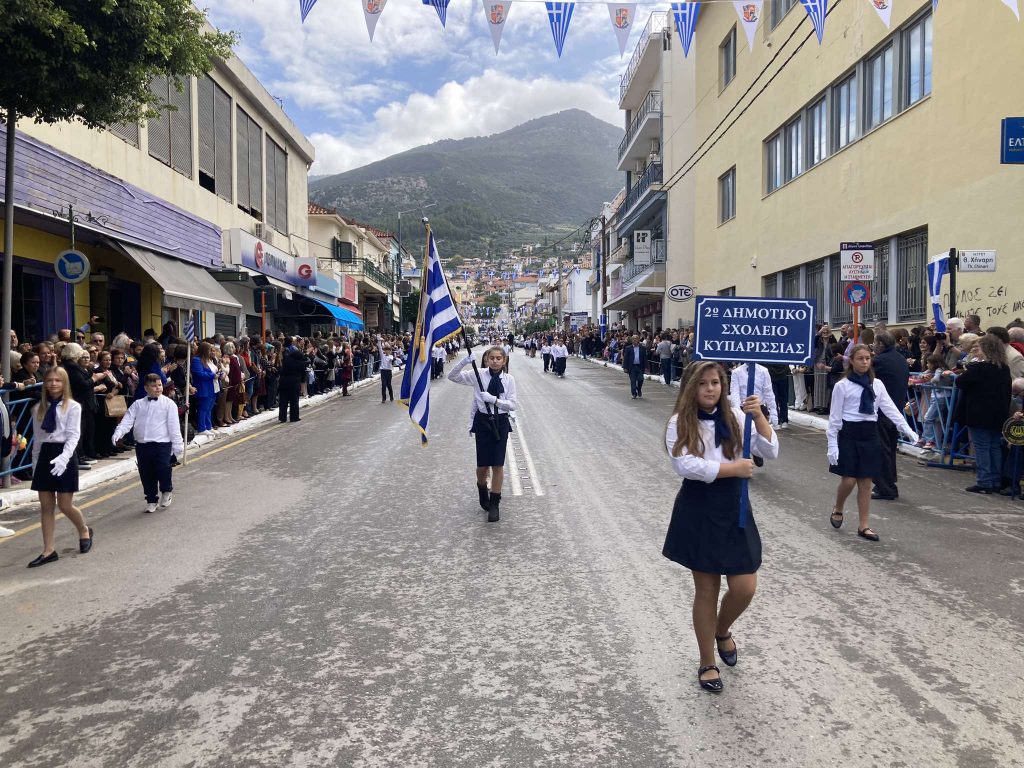 Με την παρέλαση μαθητών και αθλητικών – πολιτιστικών συλλόγων κορυφώθηκαν οι εορταστικές εκδηλώσεις για την 85η εθνική επέτειο της 28ης Οκτωβρίου 1940 στην Κυπαρισσία. Πλήθος κόσμου χειροκρότησε τη μαθητιώσα νεολαία και τα μέλη των συλλόγων στην παρέλαση επί της οδού Ελ. Βενιζέλου.