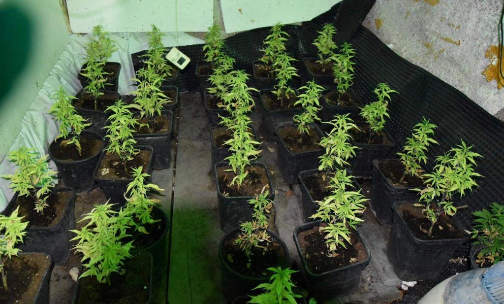 Το μεσημέρι της Τετάρτης οι αστυνομικοί διενήργησαν έρευνα σε υπόγειο χώρο της περιφραγμένης μονοκατοικίας όπου διέμενε προσωρινά ο 41χρονος και στην οποία υπήρχαν ελεύθερα δύο σκυλιά. Εκεί βρέθηκε εργαστήριο εσωτερικής καλλιέργειας κάνναβης, εντός του οποίου καλλιεργούνταν με τεχνητές συνθήκες φωτισμού, θέρμανσης και εξαερισμού 67 φυτά κάνναβης ύψους έως 50 εκατοστών.