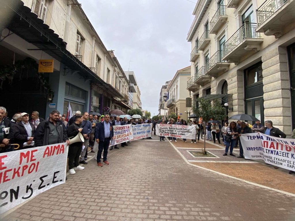 Παράσταση διαμαρτυρίας, στο κέντρο της Καλαμάτας πραγματοποιούν αυτή την ώρα, σωματεία και συνδικάτα της πόλης προκειμένου να μην προχωρήσουν οι διαδικασίες πλειστηριασμού α’ κατοικίας για εποχική εργαζόμενη που διαβιεί σ’ αυτήν μαζί με τον 15χρονο γιο της.