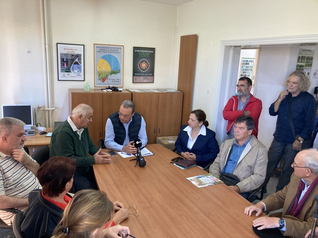 Στον κ. Φάμελλο έθεσαν θέματα και προβλήματα όπως το κόστος παραγωγής, ο ΦΠΑ, η ψαλίδα της τιμής από το χωράφι στο ράφι, η θηλιά των τραπεζών, η έλλειψη εργατών γης, η δακοκτονία, αλλά και προβλήματα όπως τα δίκτυα του φράγματος, τα αγροτικά οδικά δίκτυα, η λειψυδρία και η υφαλμύρωση.