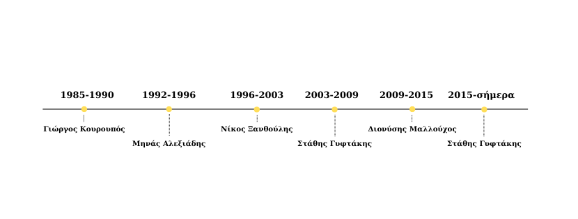 Η θητεία του διήρκεσε μέχρι και το 1996, οπότε αποχώρησε για να ολοκληρώσει τη διδακτορική του διατριβή, δίνοντας τη «σκυτάλη» στο συνθέτη, σολίστ και κορυφαίο α΄ τρομπετίστα της Εθνικής Λυρικής Σκηνής, Νίκο Ξανθούλη.