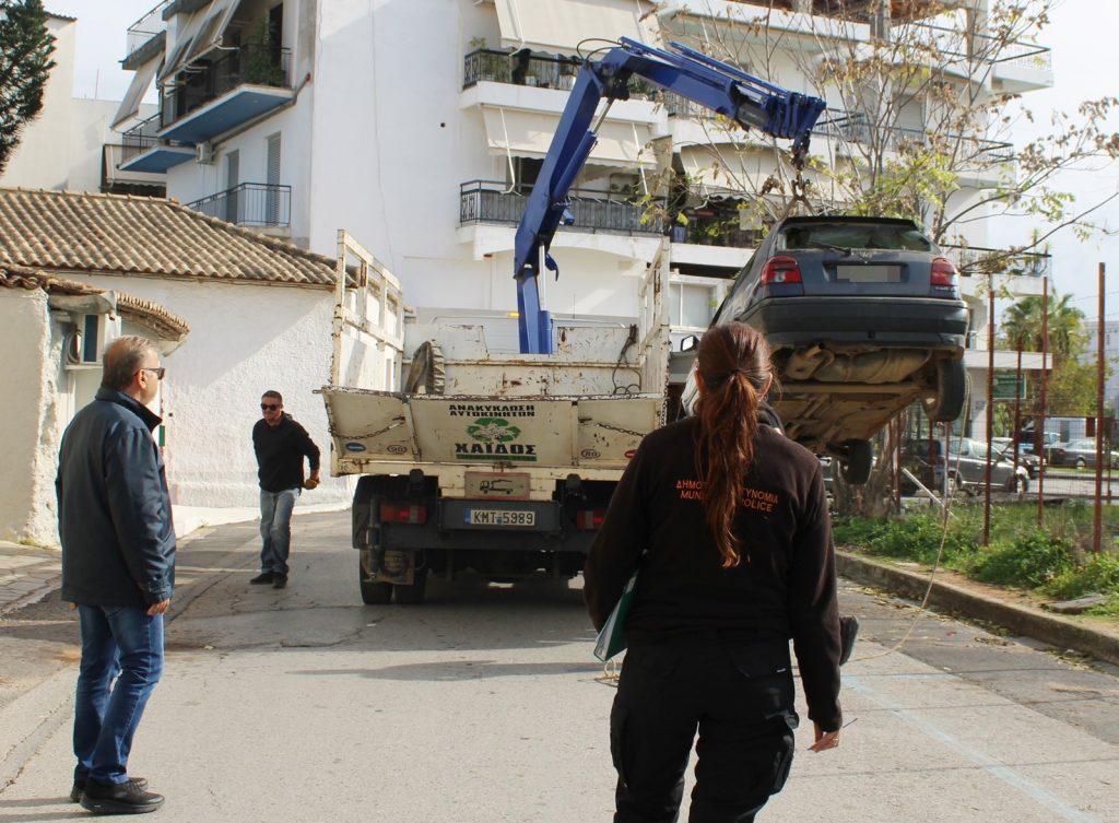 Μέσω της Δημοτικής Αστυνομίας, αφού προέβη στην καταγραφή και σήμανση των εγκαταλελειμμένων οχημάτων, ο Δήμος άρχισε τη σταδιακή απομάκρυνσή τους. Τη διαδικασία περισυλλογής επέβλεψε ο αντιδήμαρχος Ηλίας Γεωργόπουλος.