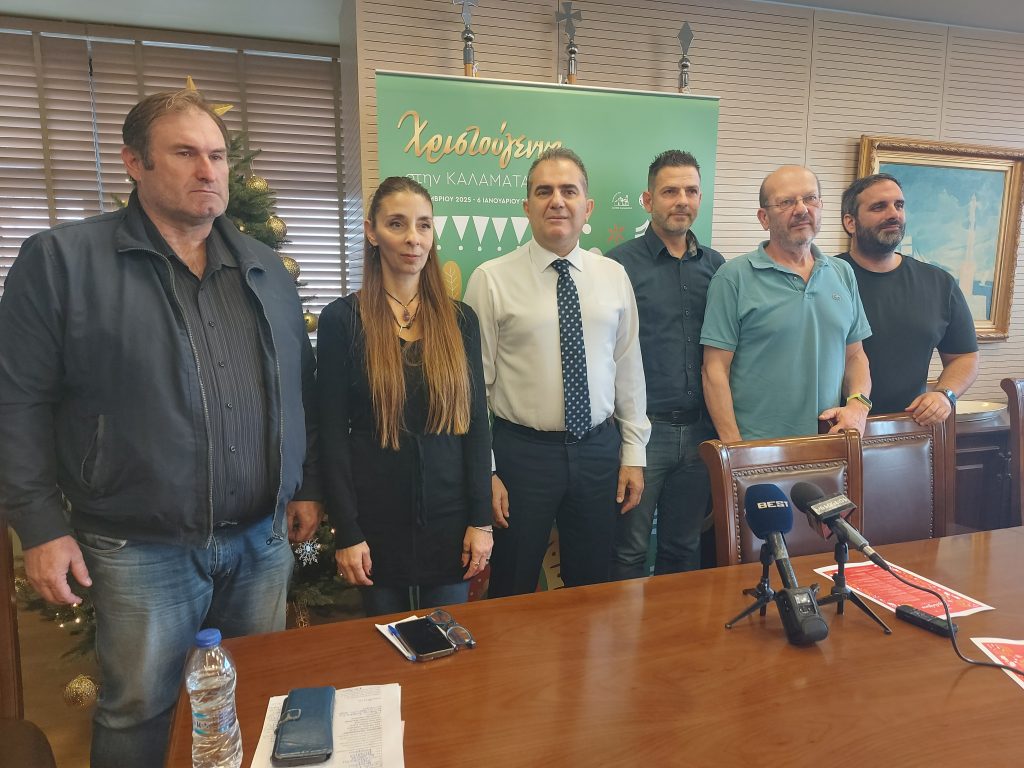 Πλαισιωμένος με συντελεστές των φετινών εορταστικών εκδηλώσεων, ο δήμαρχος Καλαμάτας παρουσίασε το χριστουγεννιάτικο πρόγραμμα, που ξεκίνησε χθες με το άναμμα του δέντρου της Κεντρικής Αγοράς, ενώ καιρού επιτρέποντος αύριο θα ανάψει και το δέντρο της κεντρικής πλατείας με συναυλία του Γιώργου Τσαλίκη.