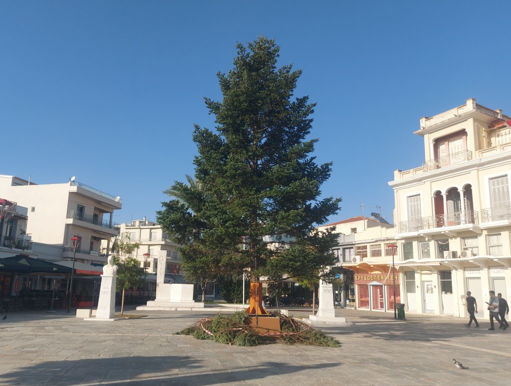 Επίσης φυσικό δέντρο τοποθετήθηκε και στην πλατεία 23ης Μαρτίου, στη θέση της μπάλας, που για πολλά χρόνια τοποθετούσαν στο σημείο.