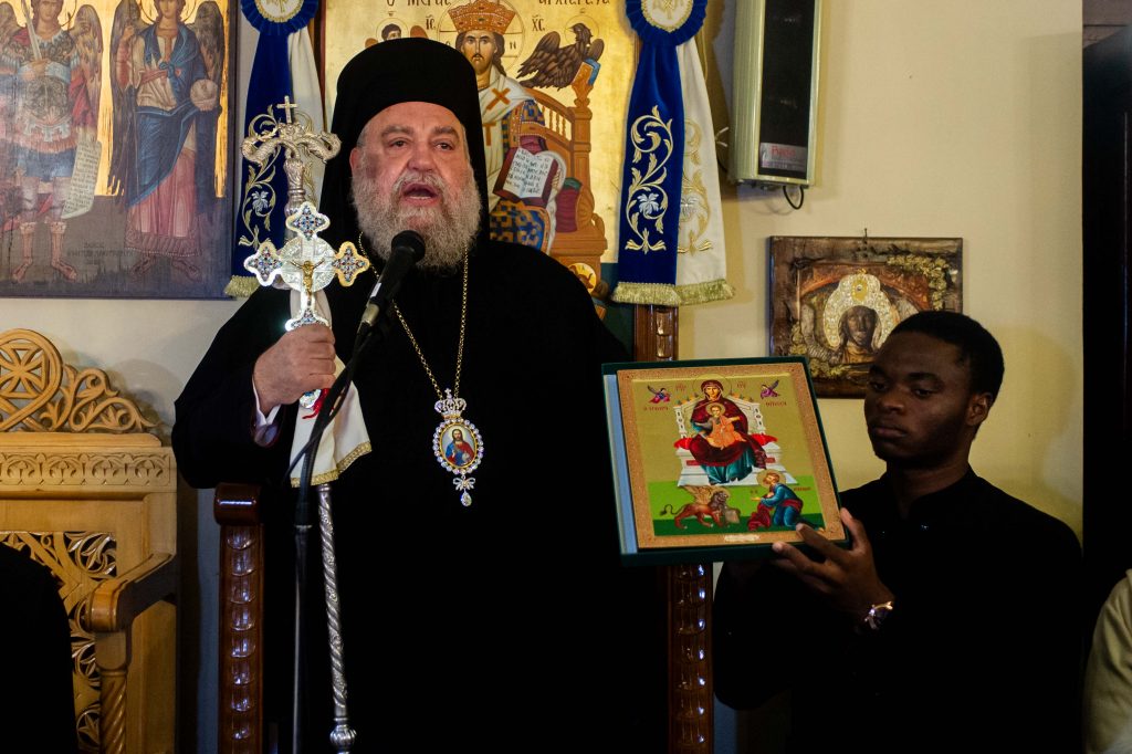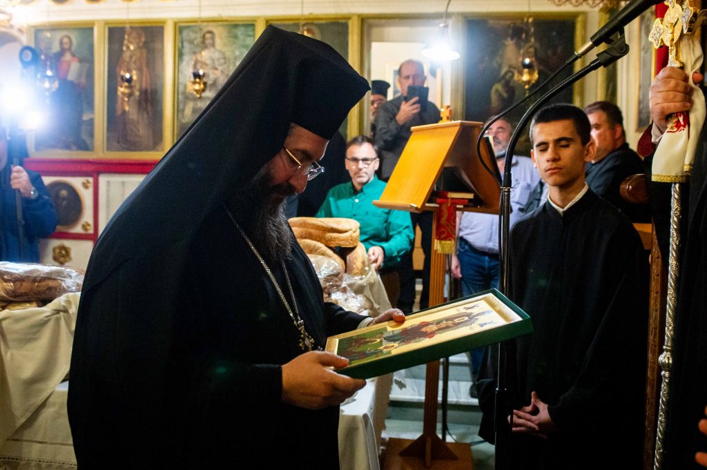 Μετά το πέρας του εσπερινού ο Σεβ. Μητροπολίτης Καρθαγένης ευχαρίστησε τον οικείο ποιμενάρχη, Σεβ. Μητροπολίτη Μεσσηνίας κ. Χρυσόστομο, για την προτροπή της ενταύθα παρουσίας και συμμετοχής στην πανήγυρη και αφού συνεχάρη τον Πρωτοσύγκελλο της Ιεράς Μητροπόλεως Μεσσηνίας Αρχιμ. Φίλιππο Χαμαργιά για την ανάδειξη και εκ βάθρων ανακαίνιση του ιστορικού παρεκκλησίου της ενορίας του Αγίου Νικολάου Φλαρίου, στην οποία γεννήθηκε και γαλουχήθηκε από μικρό παιδί, εν συνεχεία του προσέφερε, εκ μέρους της Α.Θ.Μ. του Πάπα και Πατριάρχη Αλεξανδρείας κ. Θεοδώρου του Β’ και επ’ αυκαιρία της εγγιζούσης ονοματικής εορτής του π. Φιλίππου, την ιερά εικόνα της Παναγίας της Αγκαραθίτισσας και του Ευαγγελιστού Μάρκου, η οποία φιλοτεχνήθηκε εξ αφορμής της συμπληρώσεως εικοσαετούς ευκλεούς Πατριαρχείας του στο Δευτερόθρονο Πατριαρχείο.