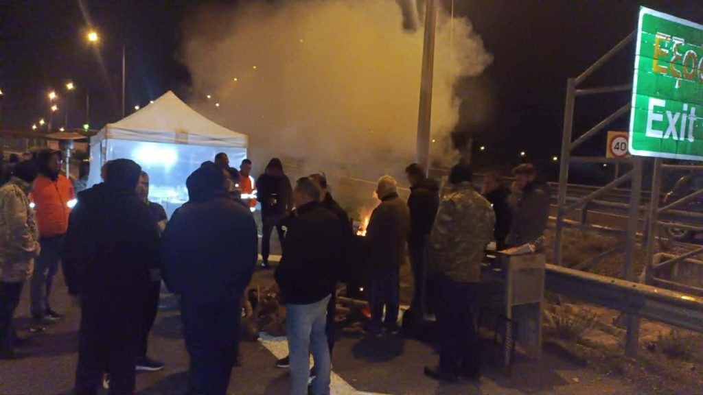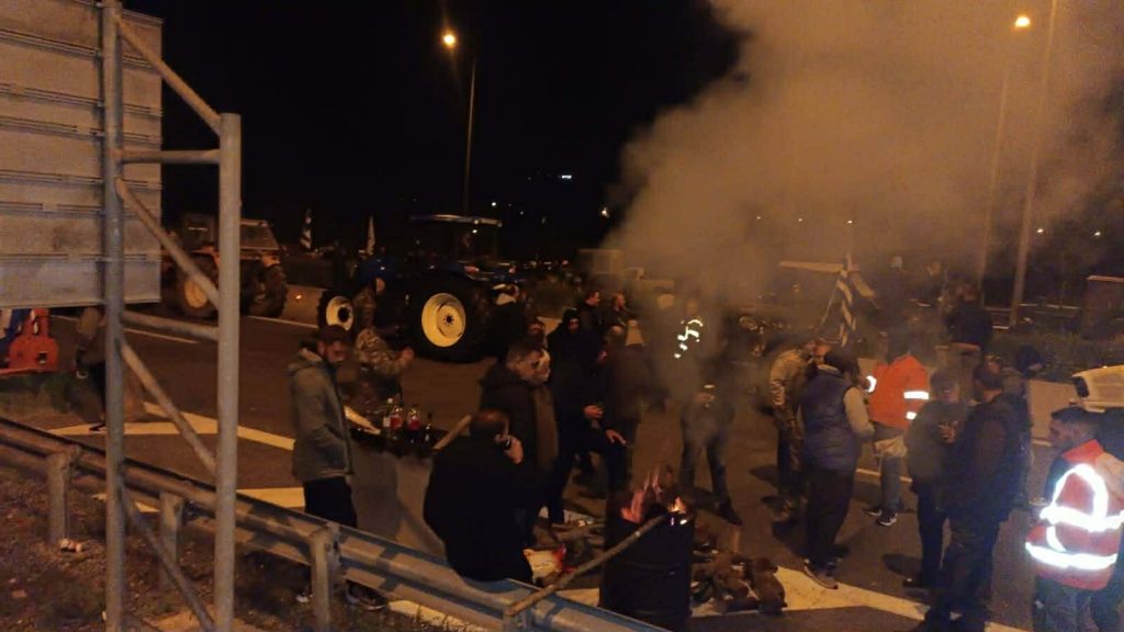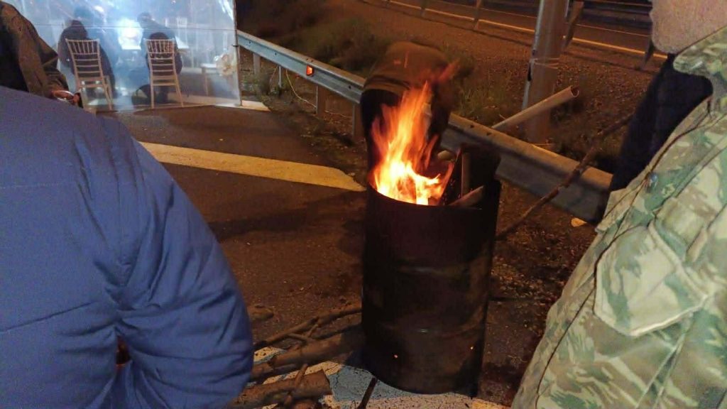 Για να αντέξουν το κρύο οι αγρότες άναψαν φωτιές, ενώ δηλώνουν αποφασισμένοι να κάνουν και Χριστούγεννα εκεί, αν η κυβέρνηση δεν ικανοποιήσει τα αιτήματά τους.