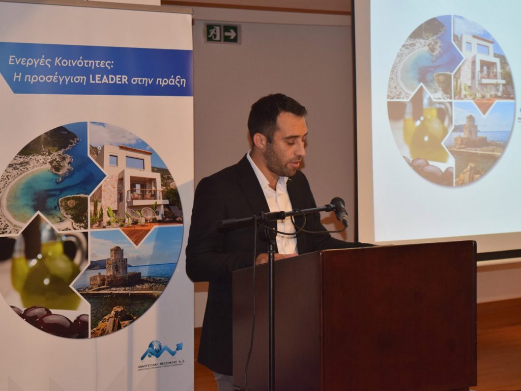 Ο Ιωάννης Αδρακτάς, διευθύνων σύμβουλος της Αναπτυξιακής Μεσσηνίας ΑΕ Α.ΟΤΑ, παρουσίασε «Τον ρόλο της Αναπτυξιακής Μεσσηνίας ΑΕ Α.ΟΤΑ ως Ομάδα Τοπικής Δράσης», αναδεικνύοντας τη στρατηγική και τα εργαλεία υλοποίησης του προγράμματος.