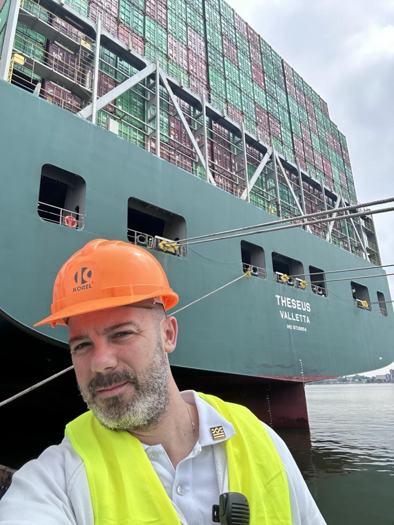 Ο Θησέας έχει μήκος 368,99 μέτρων, πλάτος 51,04 μέτρα και χωρητικότητα 14.354 teus. Εμείς δεν υπηρετούμε πάντα στα ίδια πλοία, τώρα θα τύχει να πάω πάλι στο ίδιο, και θα το παραλάβω από τη Νέα Υόρκη για να πάμε σε Ασία, Κίνα, αυτή τη φορά από τον Ειρηνικό ωκεανό. Επιστροφή πάλι από Παναμά και Κίνα – Αμερική. Εκτιμώ ότι θα ταξιδεύω για 6 μήνες.