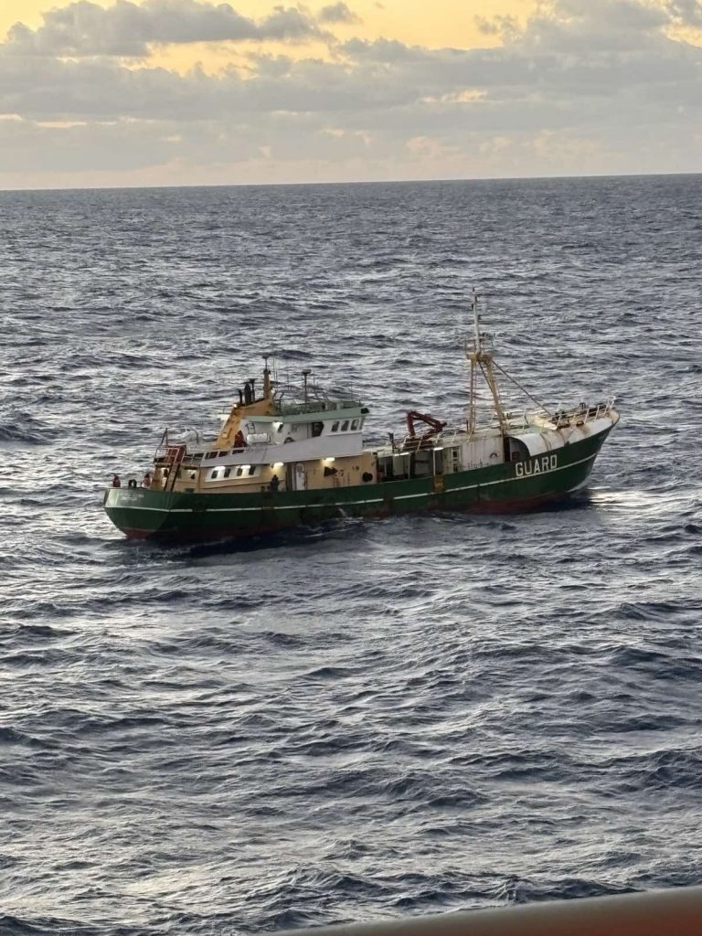 Αμέσως και αφού μίλησα με την εταιρεία, αποφάσισα να αλλάξω πορεία και να συνδράμω. Αντίκρισα ένα σχεδόν κατεστραμμένο πλοίο αφού είχε αντέξει πολλές καταιγίδες. Ήταν ψαράδες που είχαν ξεκινήσει από το Cape Town και το πλοίο τους έπαθε βλάβη στη μέση του Ατλαντικού, όπου παρασυρόταν ακυβέρνητο για εβδομάδες.