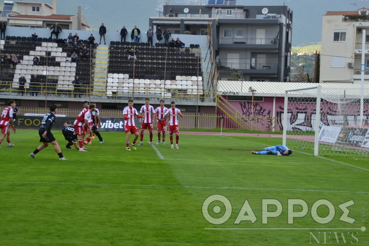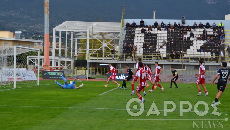 Οι «ερυθρόλευκοι» εμφανίστηκαν πιο κινητικοί επιθετικά στο β’ μέρος, όμως η Καλαμάτα έδειξε επαγγελματισμό και «καθάρισε» παιχνίδι, σημειώνοντας ένα ακόμη γκολ στο 69’ με κεφαλιά του Βαφέα (3-1).