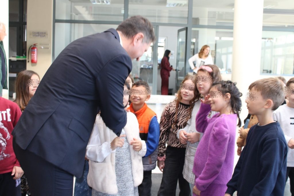 Ο δήμαρχος υποδέχθηκε θερμά τα παιδιά και τους εκπαιδευτικούς τους, τους ευχαρίστησε για την όμορφη επίσκεψη και ευχήθηκε υγεία, χαρά και πρόοδο τη νέα χρονιά.
