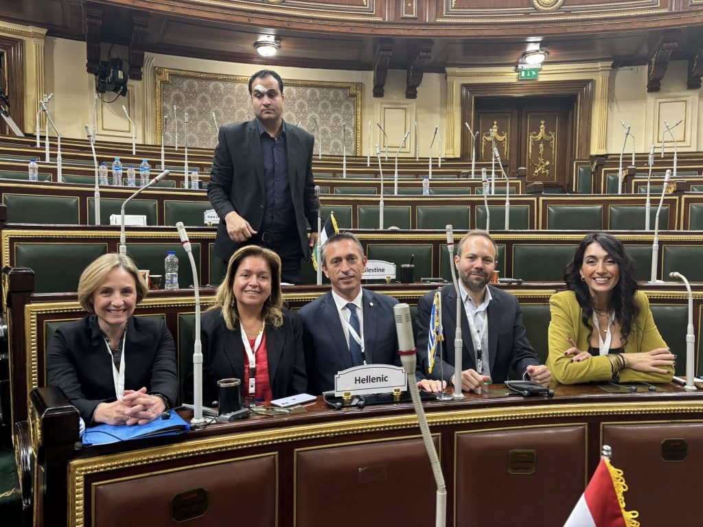Η ελληνική κοινοβουλευτική αποστολή, με επικεφαλής τον α’ αντιπρόεδρο της Βουλής Γιάννη Πλακιωτάκη, επισκέφθηκε επίσης την ελληνική πρεσβεία στο Κάιρο, όπου ο πρέσβης Νικόλας Παπαγεωργίου διοργάνωσε μια ιδιαίτερη εκδήλωση, στην οποία συμμετείχαν πολυάριθμα μέλη της ελληνικής ομογένειας. Η ατμόσφαιρα ήταν ζεστή και εγκάρδια, τονώνοντας το αίσθημα υπερηφάνειας και βαθιάς σύνδεσης της πατρίδας με τους Έλληνες της Αιγύπτου, γεγονός που αναδεικνύει τον σημαντικό ρόλο που επιτελεί η ομογένεια στη διατήρηση του ελληνικού πολιτισμού, της ενότητας και των κοινών αξιών, παρά την απόσταση από την Ελλάδα.