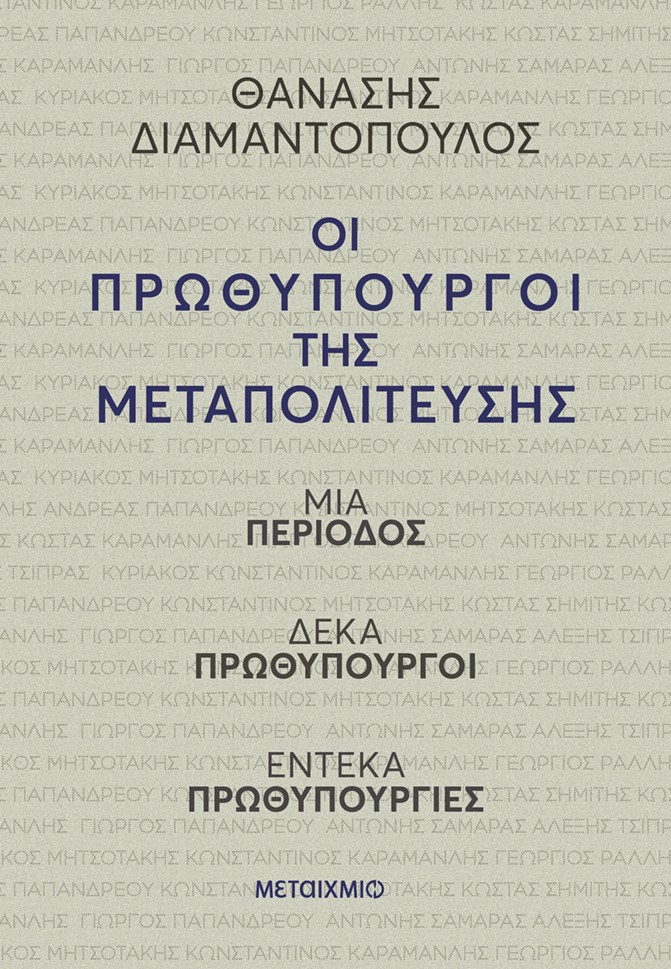 Φως στη σύγχρονη πολιτική ιστορία της χώρας ρίχνει ο καθηγητής Θανάσης Διαμαντόπουλος με το νέο του βιβλίο «Οι Πρωθυπουργοί της Μεταπολίτευσης», που κυκλοφόρησε πριν από λίγες ημέρες από τις εκδόσεις Μεταίχμιο.