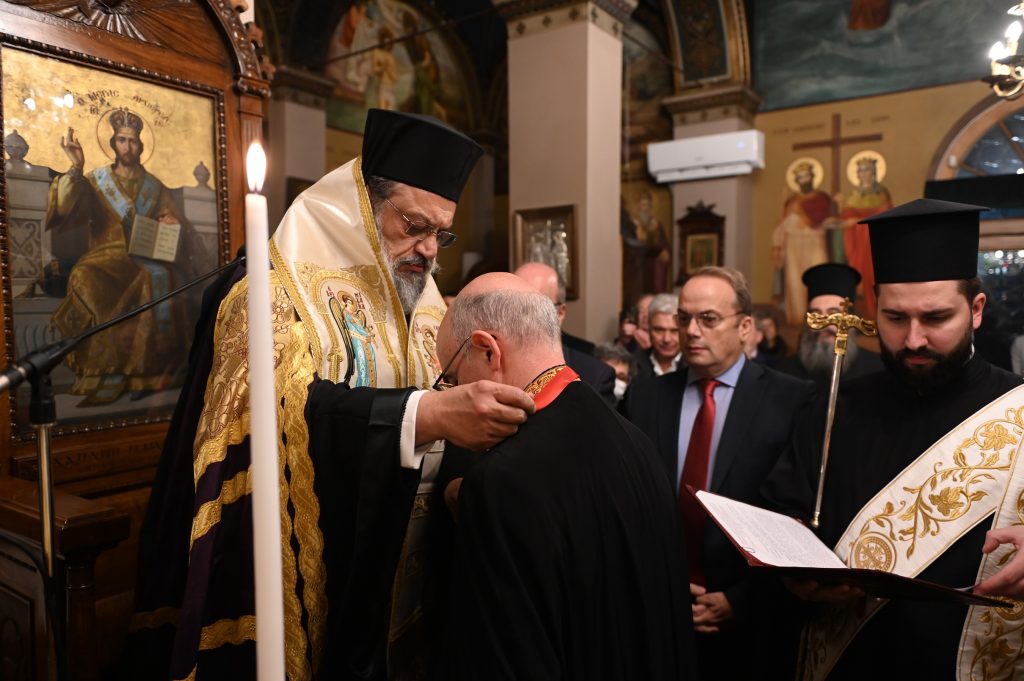 Ἡ ταπεινότης μου καὶ οἱ λοιποὶ ἅπαντες ἐγκαρδίως εὐχόμεθα, ἡ ἀπονεμηθεῖσα τῇ ὑμετέρᾳ Ἐντιμολογιότητι διάκρισις καί τιμή νὰ εἶναι προτροπή εἰς ἐνίσχυσιν τῆς νήψεως καί ἐγρηγόρσεως δι’ ὧν πιστὸς καὶ ἐπιστήμων γνωρίζονται καὶ ἀναγνωρίζονται παρὰ Θεῷ καὶ ἀνθρώποις. Νὰ εἶναι ἐνδυνάμωσις τῆς ἐνθέου διακονίας σου καί οὐχί ἐγκαύχησις καί μετεωρισμός.
