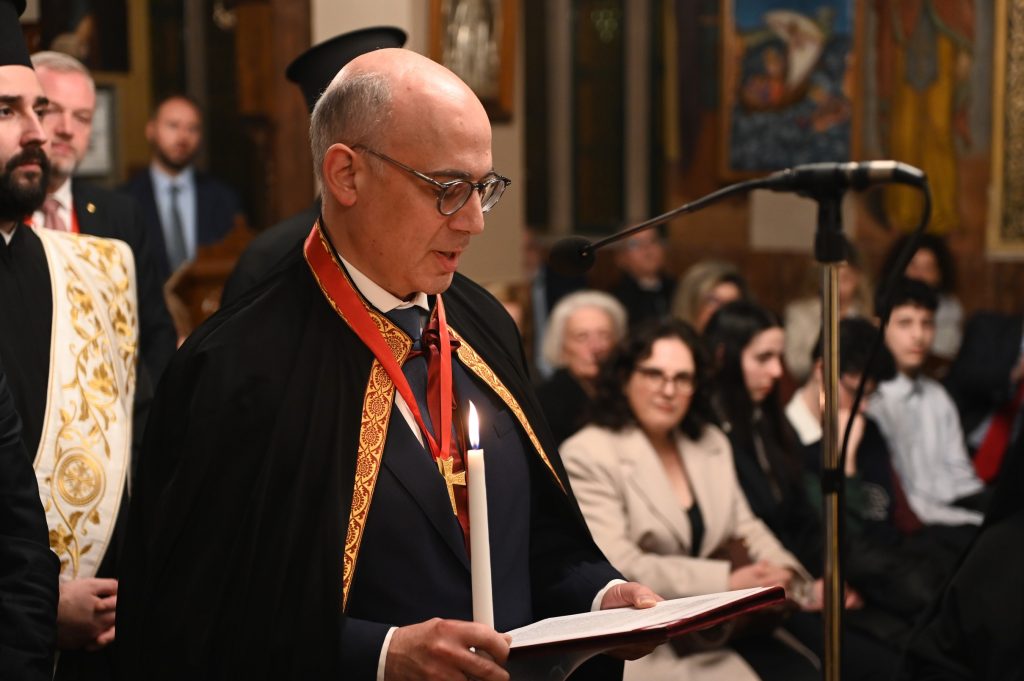 Καὶ ἰδού, ἐν μέσῳ κλήρου καὶ λαοῦ, σεβασμίων άδελφῶν Ἱεραρχῶν καί συναδέλφων ὑμῶν ὀφφικιαλίων καί καθηγητῶν ἐλήλυθεν ἡ ὥρα ἀποδόσεως τῆς ἐν λόγῳ τιμῆς, προκειμένου αὕτη νὰ ἐπιστρέψῃ ὀφειλετικῶς τιμιωτέρα διὰ τοῦ συνεχιζομένου ἐπιστημονικοῦ σας ἔργου καὶ τῆς προσφορᾶς σας εἰς τὸν συνάνθρωπον, καὶ οὑτωσὶ νὰ τιμᾶται ἡ ἐν Κωνσταντινουπόλει Μεγάλη τοῦ Χριστοῦ Ἐκκλησία.