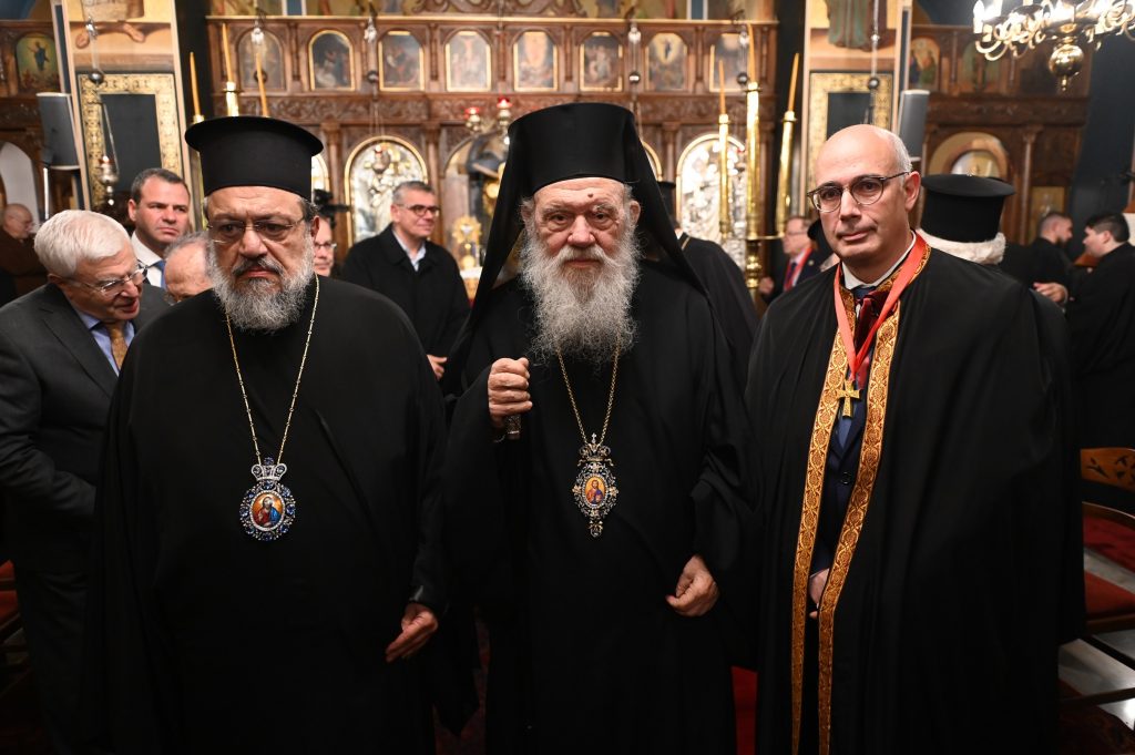 Εξόχως τιμητική για όλους μας είναι η παρουσία του Μακαριωτάτου Αρχιεπισκόπου Αθηνών και πάσης Ελλάδος κ.κ. Ιερωνύμου. Η μακρόχρονη πρωθιεραρχική του διακονία, η ποιμαντική του σοφία, η θεσμική του νηφαλιότητα και η έμπρακτη μέριμνά του για τον άνθρωπο και την κοινωνία αποτελούν πολύτιμο παράδειγμα εκκλησιαστικής ευθύνης και διακριτικής προσφοράς. Η παρουσία του προσδίδει ιδιαίτερη πνευματική βαρύτητα στη σημερινή εκδήλωση.”