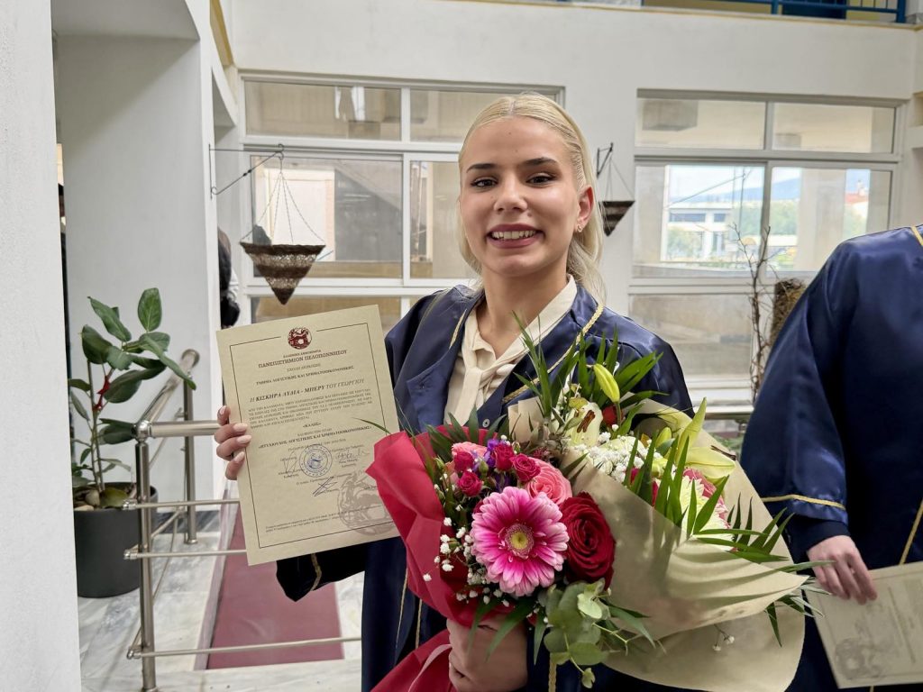 Μια ακόμα συμμετέχουσα στη χθεσινή ορκωμοσία η οποία είχε τη δυνατότητα να σπουδάσει στον τόπο καταγωγής της, είναι η Λυδία. Κάνοντας λόγο για τη φοίτησή της στην Καλαμάτα, εξήγησε ότι ήταν μια καθ’ όλα ευχάριστη περίοδος για την ίδια, καθώς έχει τις καλύτερες εντυπώσεις για το τμήμα από το οποίο αποφοίτησε.