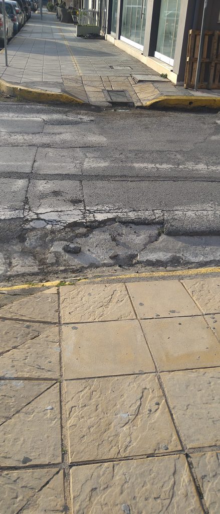 Από την άλλη πλευρά, όπως μας επισήμανε, σε άλλα σημεία της πόλης έχουμε τις έξυπνες διαβάσεις που ανάβουν, όταν στην προηγούμενη ακριβώς γωνία μπορεί η διάβαση να είναι σβησμένη και ούτε καν να φαίνεται ή οι κυβόλιθοι να έχουν αρχίσει να φεύγουν ή να έχουν πάθει καθίζηση.