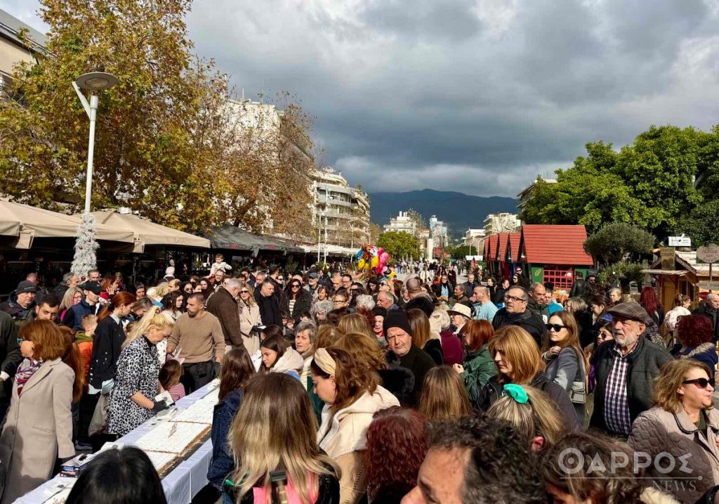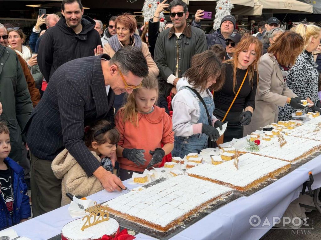 Εκατοντάδες πολίτες συγκεντρώθηκαν, χθες το πρωί στην κεντρική πλατεία της Καλαμάτας, με αφορμή την κοπή της πρωτοχρονιάτικης βασιλόπιτας από τον Σύλλογο Εστίασης Μεσσηνίας. Επαναλαμβάνοντας το ετήσιο ραντεβού του, ο σύλλογος επανέλαβε και φέτος το εντυπωσιακό έθιμο, κόβοντας τη μεγαλύτερη βασιλόπιτα, η οποία έφτασε τα 18 μέτρα σε μήκος και προσέφερε περίπου 2500 κομμάτια στο κοινό.