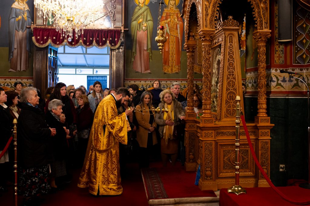 Κατά το έθος τελέσθηκε ο Εσπερινός και η Ιερά Παράκλησις της Θεοτόκου, προεξάρχοντος του Πρωτοσυγκέλλου της Ι. Μητροπόλεως Αρχιμ. Φιλίππου Χαμαργιά πλαισιωμένου υπό του συνόλου των ιερέων της πόλεως της Καλαμάτας και συνευχομένου από του Ιερού Βήματος του Σεβ. Μητροπολίτου Μεσσηνίας κ. Χρυσοστόμου.