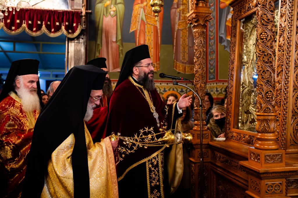 Προ του πέρατος της Ακολουθίας ο Σεβασμιώτατος απευθυνόμενος στους πιστούς, ευχήθηκε η Υπεραγία Θεοτόκος να είναι έφορος, σκέπη και προστασία για όλο τον κόσμο, ιδιαιτέρως στους δύσκολους χρόνους, της κρίσης και της αμφισβήτησης που διανύουμε, ενώ τόνισε ότι η Παναγία η «Υπαπαντή» μας προσκαλεί όλους σε μια συνάντηση με τον ίδιον τον Θεόν.