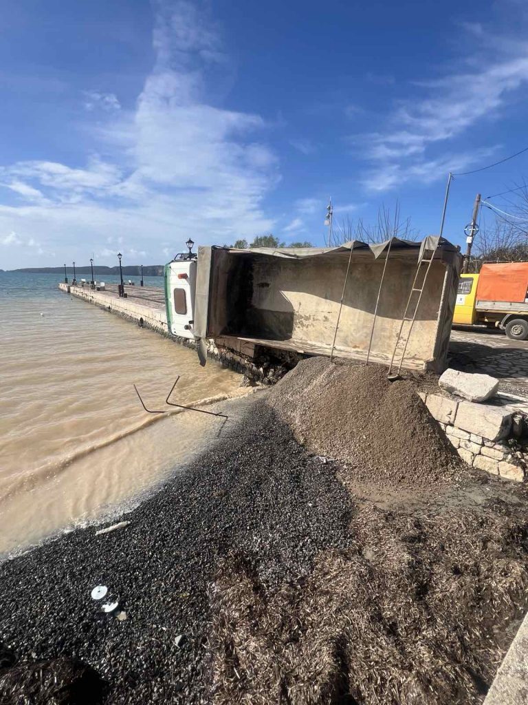 Τμήμα του μόλου κατέρρευσε, ενώ φορτηγό όχημα ανετράπη και βρέθηκε επικίνδυνα κοντά στη θάλασσα, σε ένα περιστατικό που κατά κοινή ομολογία θα μπορούσε να έχει εξελιχθεί σε τραγωδία.